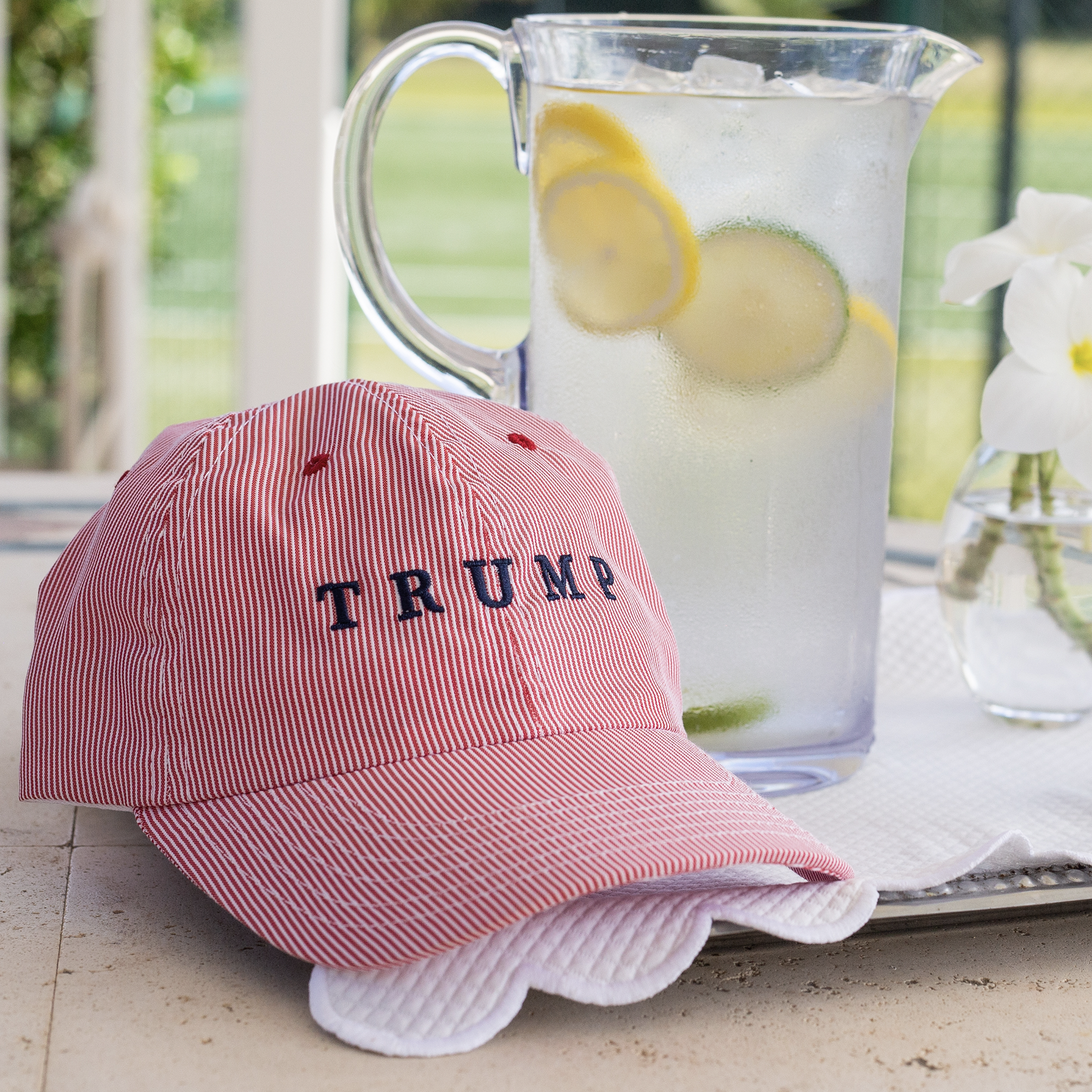 The perfect hat for the summer, this hat is unstructured for a comfortable fit. Each one has mini stripes to add a fun touch to a classic hat.