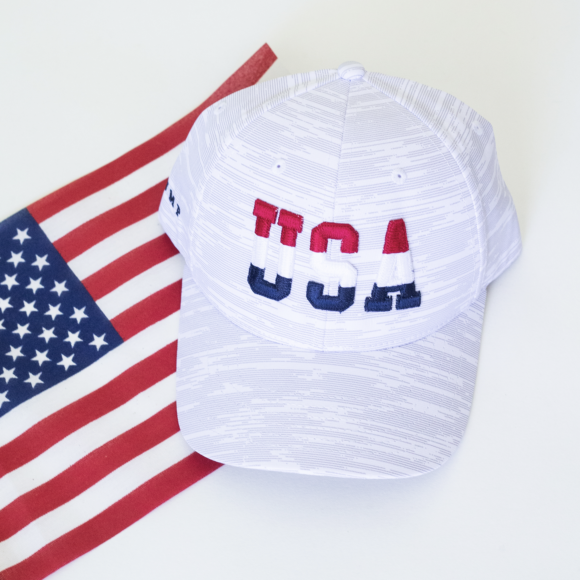 Our favorite hat of the season, this USA puff embroidered hat is perfect for anyone looking to show their love for America. Adjustable in size with a comfort fit internal band. White and grey melange base hides dirt and looks sporty with a unique style! Don’t miss out on this summer exclusive!